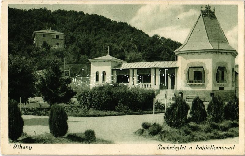 1931 Tihany, park és hajóállomás https://www.darabanth.com/de/345-Fernauktion/345.0/Ansichtskarten/Ungarn~2000004/1931-Tihany-park-es-hajoallomas~II1959459