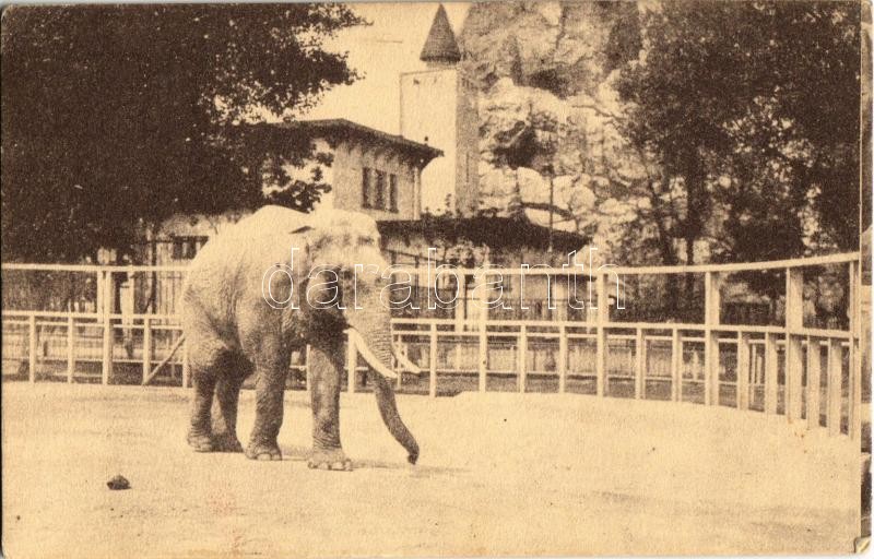 Beschreibung: Budapest XIV. Székesfővárosi Állatkert, "Sziám" óriás elefánt őfelsége a király ajándéka. Jelfy gy. felvétele (EK)