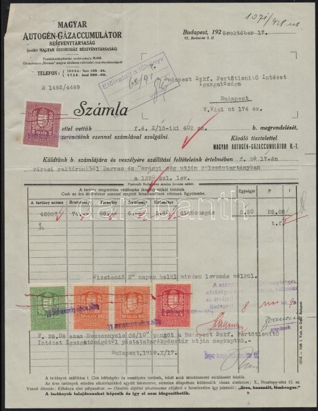 1928 Bp., Magyar Autogén-Gázaccumulátor Részvénytársaság fejléces szám... https://www.darabanth.com/de/345-Fernauktion/345.0/Kunst-Dokumente-andere-Sammelgebiete/Dokument~500018/1928-Bp-Magyar-Autogen-Gazaccumulator-Reszvenytarsasag-fejleces-szamlaja-okmanybelyege~II1957062
