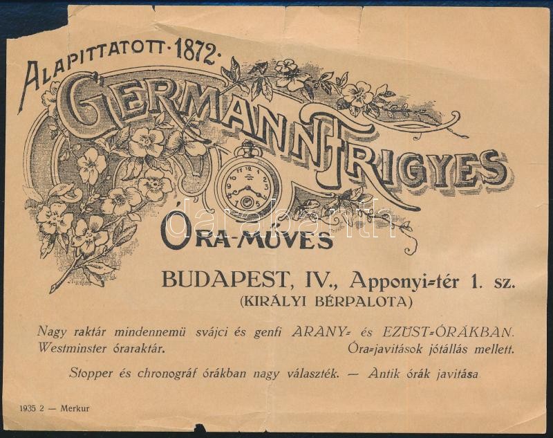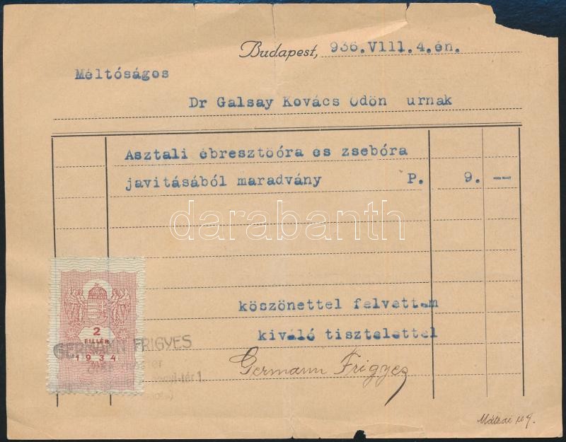 Beschreibung: 1936 Germann Frigyes óraműves díszes számlája