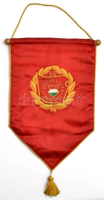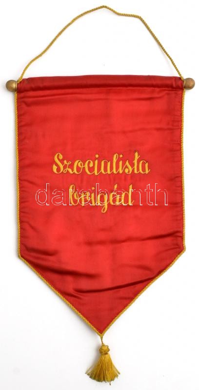 "Szocialista brigád" hímzett piros színű selyem zászló 38x24 cm https://www.darabanth.com/de/345-Fernauktion/345.0/Kunst-Dokumente-andere-Sammelgebiete/Flohmarkt~500011/Szocialista-brigad-himzett-piros-szinu-selyem-zaszlo-38x24-cm~II1954073