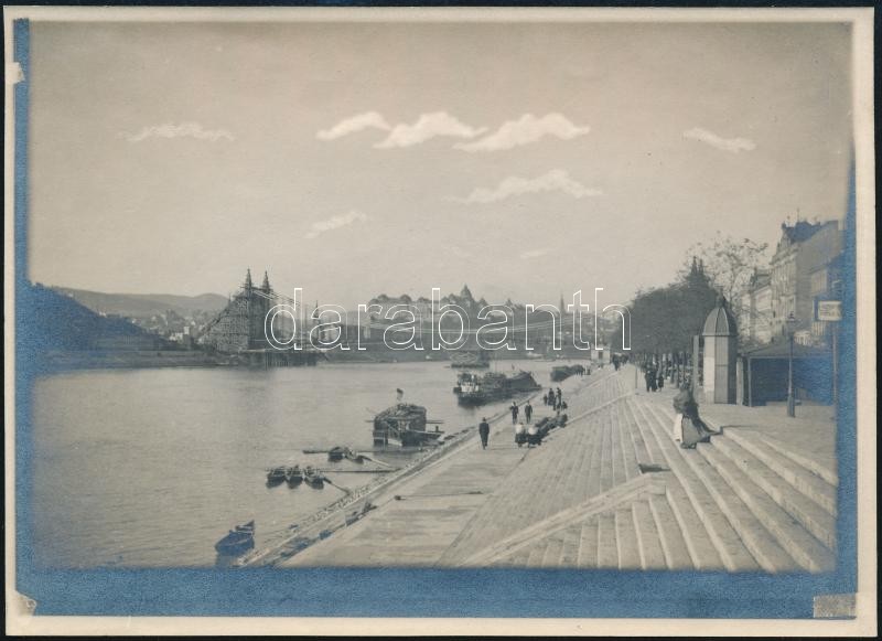 Beschreibung: Budapest, Az épülő Erzsébet híd, eredeti negatívról a 20-as éveben előhívott fotó, 13×17,5 cm