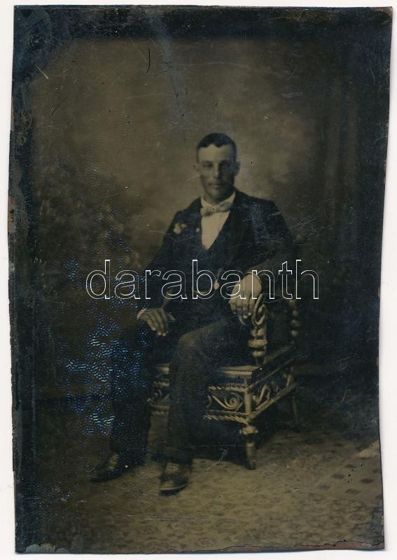 Beschreibung: cca 1900 Ferrotípia (vaslemezre készült, vásári gyorsfénykép), 9x6 cm