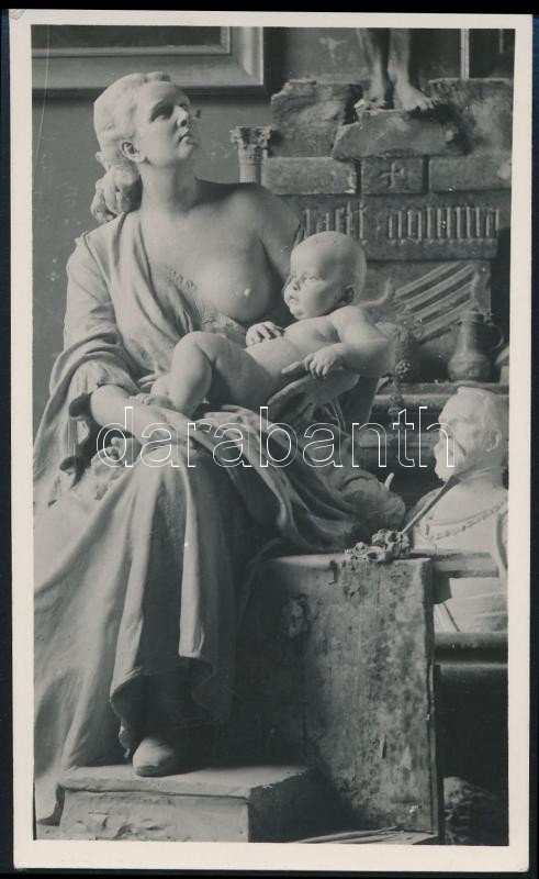 Beschreibung: 1955 kisfaludi Strobl Alajosné, Kratochwill Alojzia Lujza (1876-1964) saját kézzel írt sorai Stróbl műtermét ábrázoló fotón