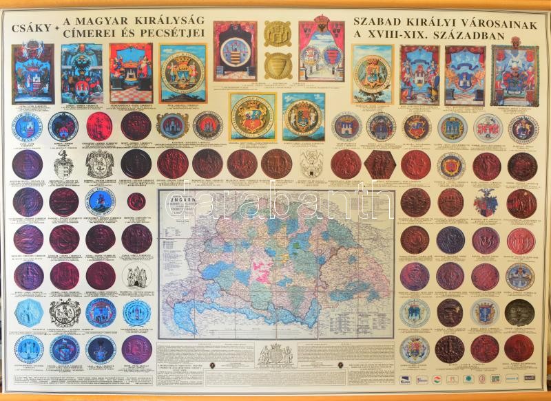 Beschreibung: A Magyar Királyság címerei és pecsétjei, térkép, 115×75 cm