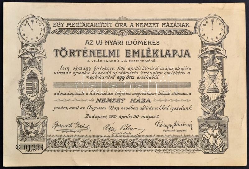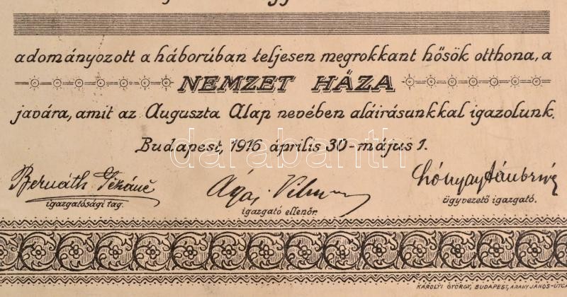 1916 "Egy megtakarított óra a Nemzet Házának", sorszámozott, díszes ig... https://www.darabanth.com/de/345-Fernauktion/345.0/Kunst-Dokumente-andere-Sammelgebiete/Militaria~500028/1916-Egy-megtakaritott-ora-a-Nemzet-Hazanak-sorszamozott-diszes-igazolo-emleklap-hadirok~II1957270