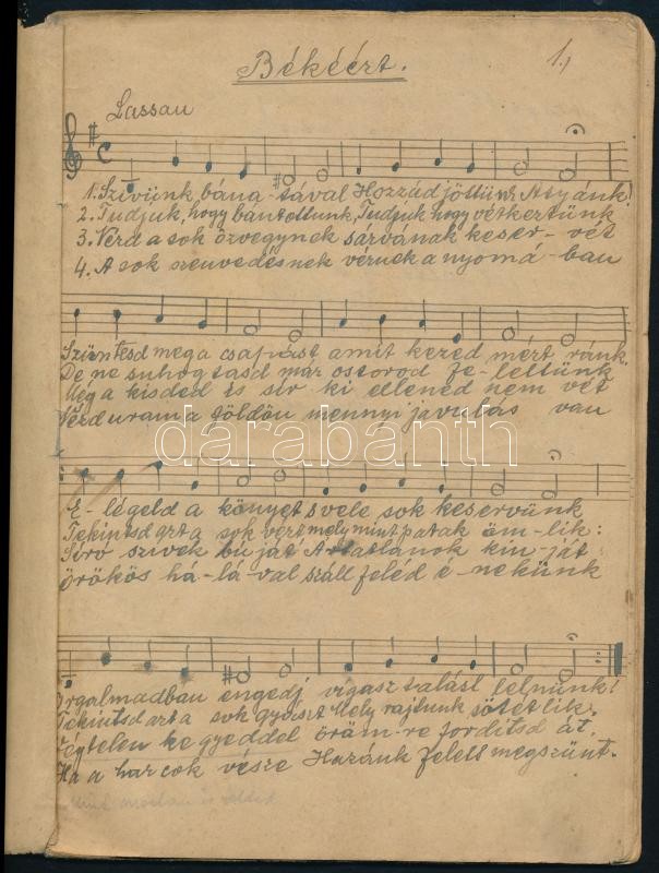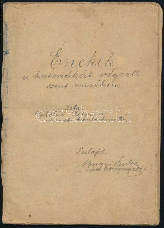 cca 1940-1951 Énekek a katonákért végzett szent miséken, Újhelyi István (1884 k.-1942) viszneki kántortanító munkájának kézzel írt másolat(?), Bugyi Endre (?-?) általános iskolai igazgató példánya, ceruzás javításokkal, későbbi (1951 k.) bejegyzésekkel