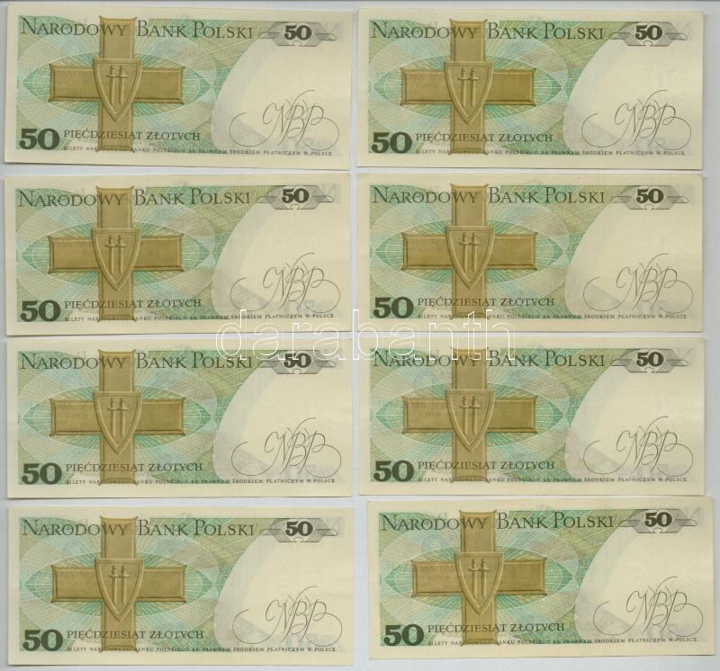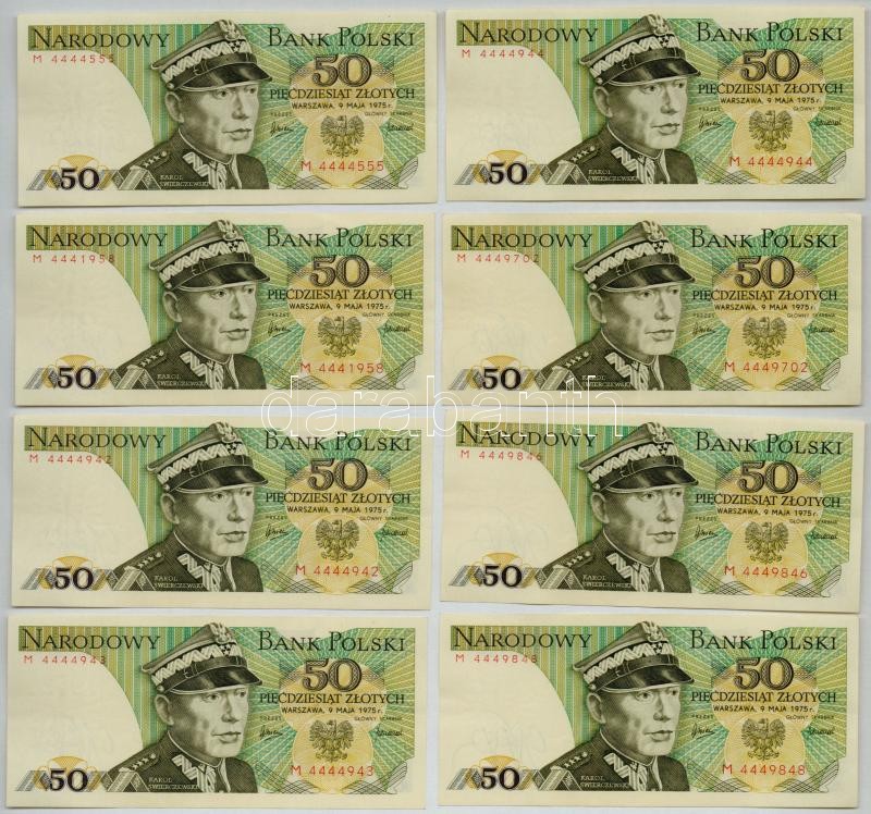 Lengyelország 1975. 50Zl (8x) közte 3db sorszámkövető és több közeli sorszám T:II