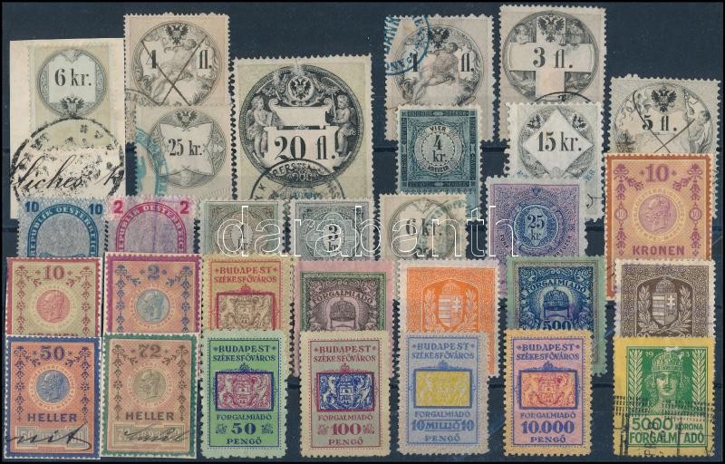 30 régi magyar és osztrák okmánybélyeg https://www.darabanth.com/de/345-Fernauktion/345.0/Philatelie-und-Postgeschichte-Ungarn/Stempelmarken~500017/30-regi-magyar-es-osztrak-okmanybelyeg~II1959179