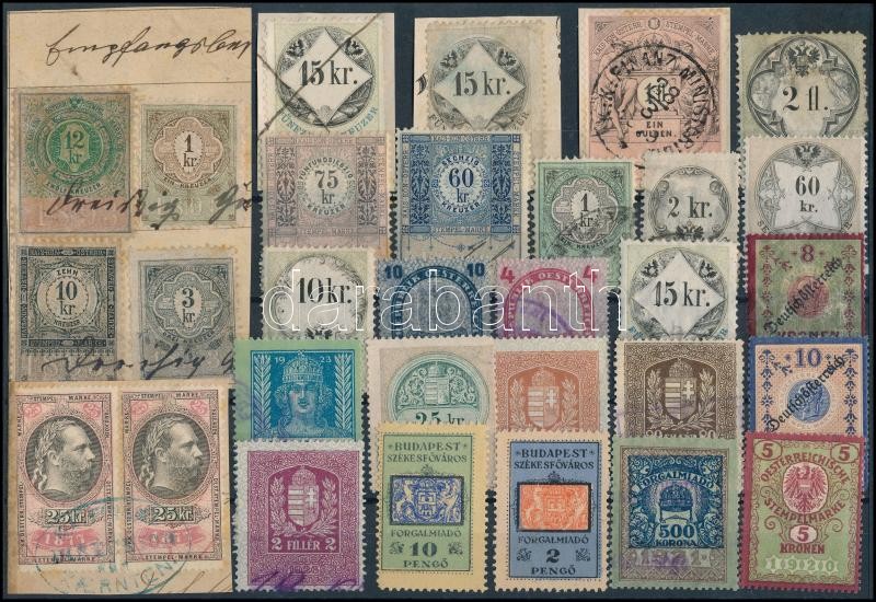 30 régi magyar és osztrák okmánybélyeg https://www.darabanth.com/de/345-Fernauktion/345.0/Philatelie-und-Postgeschichte-Ungarn/Stempelmarken~500017/30-regi-magyar-es-osztrak-okmanybelyeg~II1959180