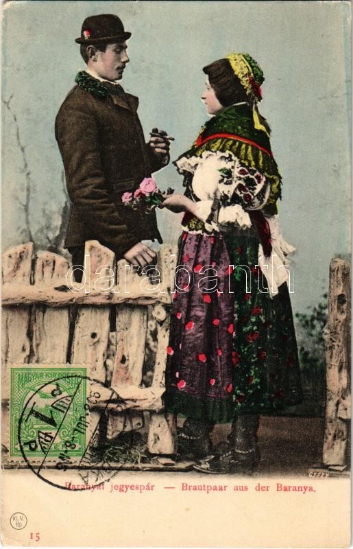1908 Baranyai jegyespár / Brautpaar aus der Baranya / Hungarian folklo... https://www.darabanth.com/de/346-Fernauktion/346.0/Ansichtskarten/Folklore~2000062/1908-Baranyai-jegyespar-Brautpaar-aus-der-Baranya-Hungarian-folklore-from-Baranya-engaged-coup~II1963285