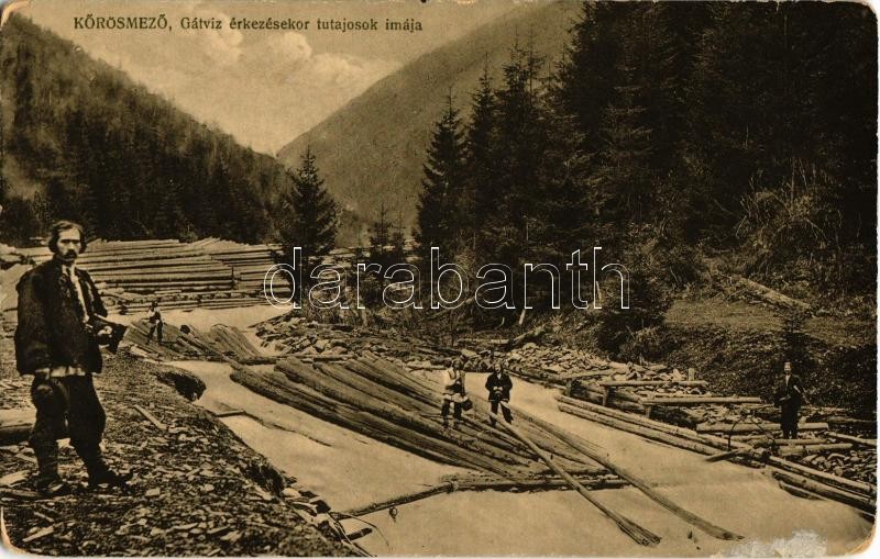 Kőrösmező, Jaszinya, Jasina, Yasinia; Gátvíz érkezésekor tutajosok imá... https://www.darabanth.com/de/346-Fernauktion/346.0/Ansichtskarten/Karpatenukraine~2000008/Korosmezo-Jaszinya-Jasina-Yasinia-Gatviz-erkezesekor-tutajosok-imaja-Benko-Miklos-kia~II1967470