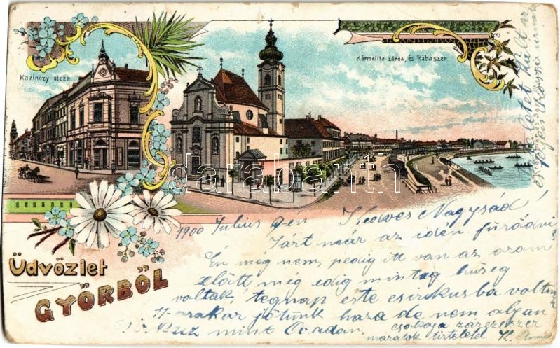 1900 Győr, Kazinczy utca, Kármelita zárda, Rábaszer. Art Nouveau, flor... https://www.darabanth.com/de/346-Fernauktion/346.0/Ansichtskarten/Ungarn~2000005/1900-Gyor-Kazinczy-utca-Karmelita-zarda-Rabaszer-Art-Nouveau-floral-litho-EB~II1964034