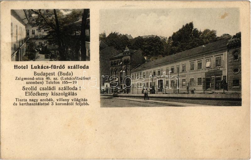 1912 Budapest II. Lukács fürdő szálloda, udvar, útépítés. Zsigmond utc... https://www.darabanth.com/de/346-Fernauktion/346.0/Ansichtskarten/Ungarn~2000005/1912-Budapest-II-Lukacs-furdo-szalloda-udvar-utepites-Zsigmond-utca-46-EK~II1965009
