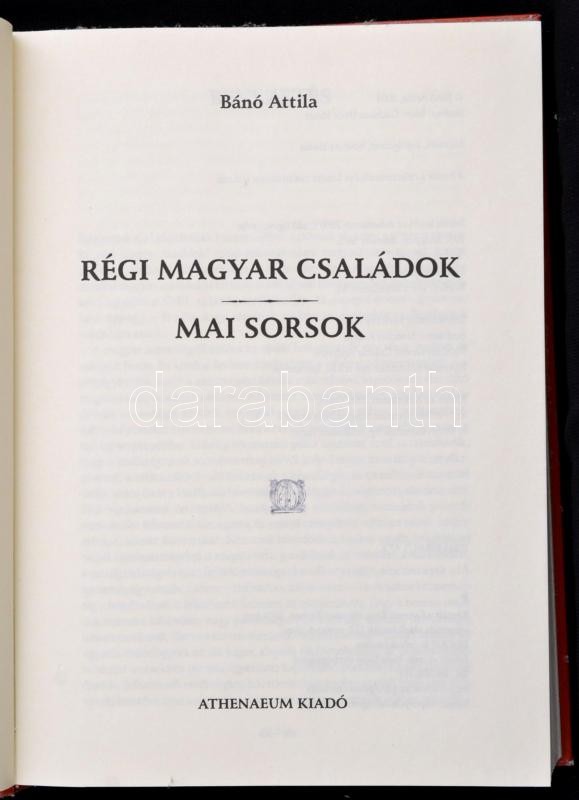 Bánó Attila: Régi magyar családok. Mai sorsok. Bp., 2004 Athenaeum. Ki... https://www.darabanth.com/de/346-Fernauktion/346.0/Bucher/Bucher-Geschichte~1500004/Bano-Attila-Regi-magyar-csaladok-Mai-sorsok-Bp-2004-Athenaeum-Kiadoi-kartonalasban-alj~II1961707
