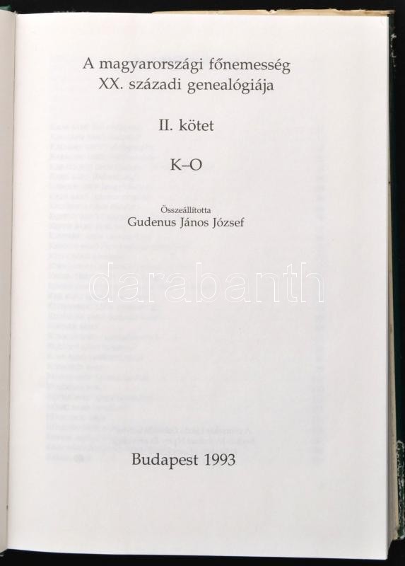 Gudenus János József: A magyarországi főnemesség XX. századi genealógiája II. kötet. K-O Bp., 1993, Natura-Tellér Kft-Heraldika. Kiadói műbőr kötés, sérült kiadói papírborítóban
