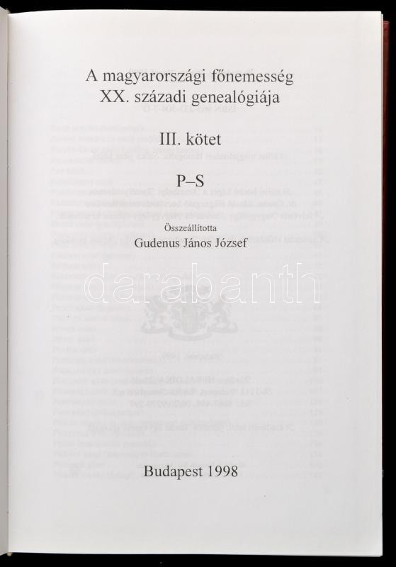 Gudenus János József: A magyarországi főnemesség XX. századi genealógi... https://www.darabanth.com/de/346-Fernauktion/346.0/Bucher/Bucher-Geschichte~1500004/Gudenus-Janos-Jozsef-A-magyarorszagi-fonemesseg-XX-szazadi-genealogiaja-III-kotet-P-S-~II1962343