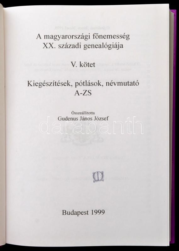 Gudenus János József: A magyarországi főnemesség XX. századi genealógi... https://www.darabanth.com/de/346-Fernauktion/346.0/Bucher/Bucher-Geschichte~1500004/Gudenus-Janos-Jozsef-A-magyarorszagi-fonemesseg-XX-szazadi-genealogiaja-V-kotetKiegesz~II1962342