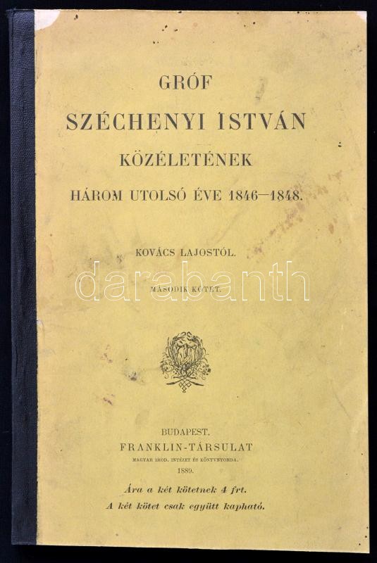 Kovács Lajos: Gróf Széchényi István közéletének három utolsó éve 1846-... https://www.darabanth.com/de/346-Fernauktion/346.0/Bucher/Bucher-Geschichte~1500004/Kovacs-Lajos-Grof-Szechenyi-Istvan-kozeletenek-harom-utolso-eve-1846-1848-2-kotet-Bp~II1966206