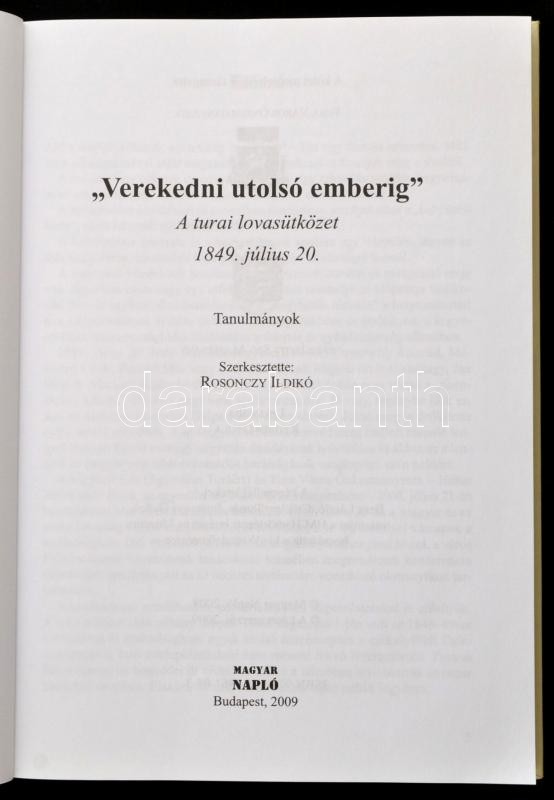 "Verekedni utolsó emberig." A turai lovasütközet. 1849. július 20. Tanulmányok. Szerk.: Rosonczy Ildikó. Bp.,2009, Magyar Napló. Kiadói kartonált papírkötés.