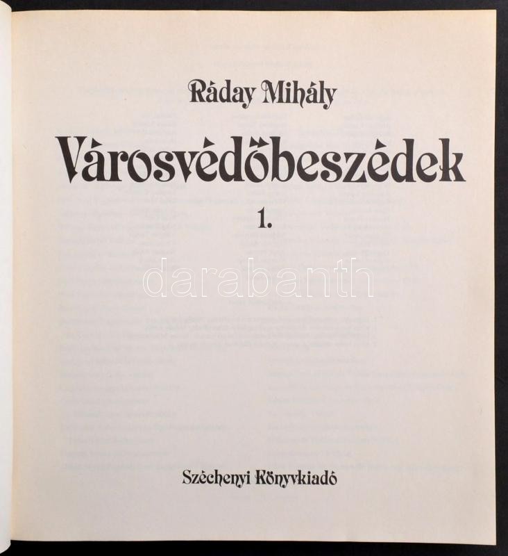 Ráday Mihály: Városvédőbeszédek I-II. Bp., 1988, Széchényi Könyvkiadó. Fekete-fehér fotókkal, két térképmelléklettel. Kiadói papírkötés, kiadói papír védőborítóban, jó állapotban.