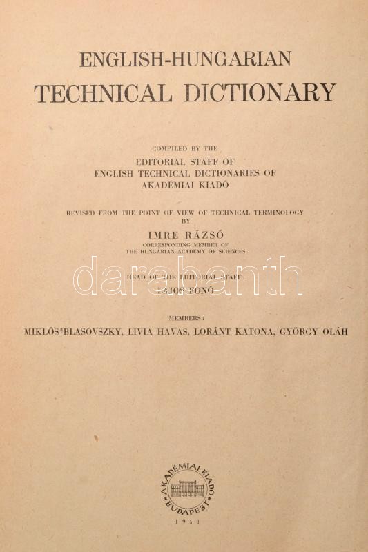 Angol-magyar műszaki szótár. Szerk.: Fonó Lajos, Blasovszky Miklós et ... https://www.darabanth.com/de/346-Fernauktion/346.0/Bucher/Bucher-Technik~1500011/Angol-magyar-muszaki-szotar-Szerk-Fono-Lajos-Blasovszky-Miklos-et-alii-Bp-1951-Akademia~II1961912