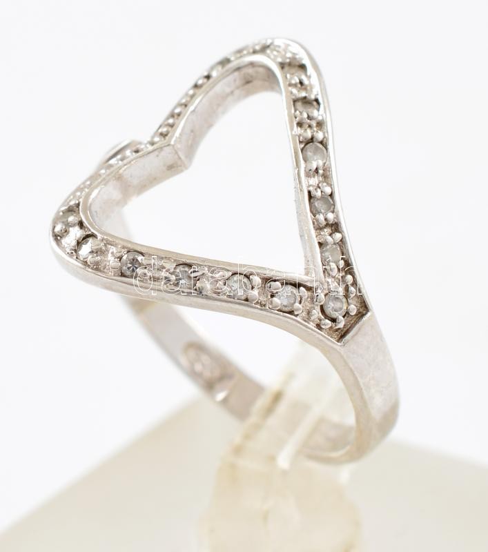 Ezüst(Ag) apró kövekkel díszített nyitott szív gyűrű, jelzett, méret: ... https://www.darabanth.com/de/346-Fernauktion/346.0/Juwelen/Juwelen~500031/EzustAg-apro-kovekkel-diszitett-nyitott-sziv-gyuru-jelzett-meret-58-hianyos-ko-bera~II1961046