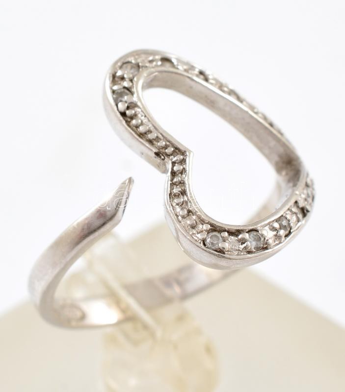 Beschreibung: Ezüst(Ag) apró kövekkel díszített nyitott szív gyűrű, jelzett, méret: 58, hiányos kő berakással, bruttó: 3 g