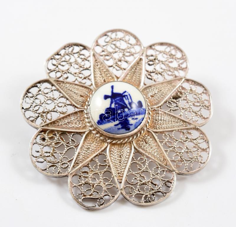 Ezüst(Ag) filigrán virágos bross holland szélmalmos díszítéssel, jelze... https://www.darabanth.com/de/346-Fernauktion/346.0/Juwelen/Juwelen~500031/EzustAg-filigran-viragos-bross-holland-szelmalmos-diszitessel-jelzett-d-4-cm-brutto-8~II1966565