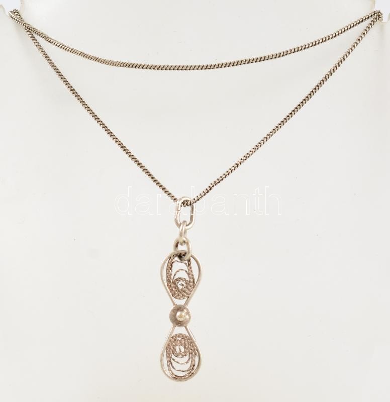 Ezüst(Ag) lánc filigrán medállal, jelzés nélkül, fém kapoccsal, h: 72 ... https://www.darabanth.com/de/346-Fernauktion/346.0/Juwelen/Juwelen~500031/EzustAg-lanc-filigran-medallal-jelzes-nelkul-fem-kapoccsal-h-72-cm-netto-5-2-g~II1964570