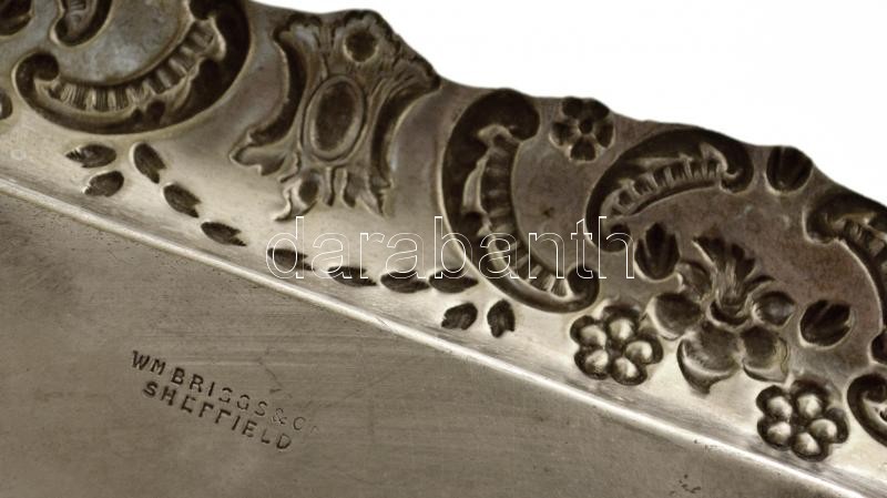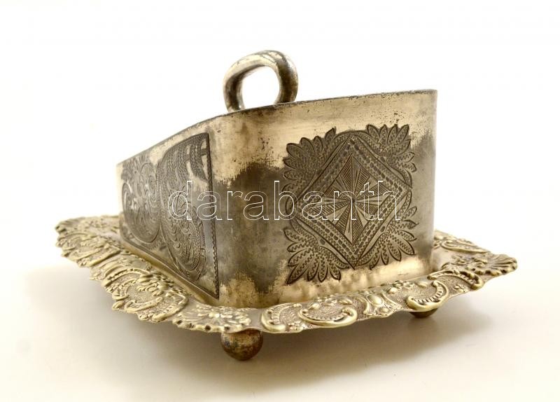 Beschreibung: cca 1900 William Briggs & Co sajttartó tálca és fedő, ezüstözött alpakka, jelzett, kopott, 24,5×19 cm