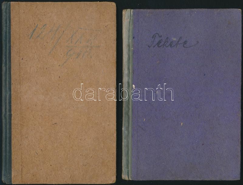 Beschreibung: 1906-1918 Cselédkönyv, biai személy részére.+Munkakönyv biai személy, gyári munkás részére. Kopott félvászon-kötésben.