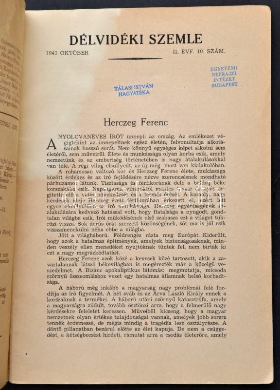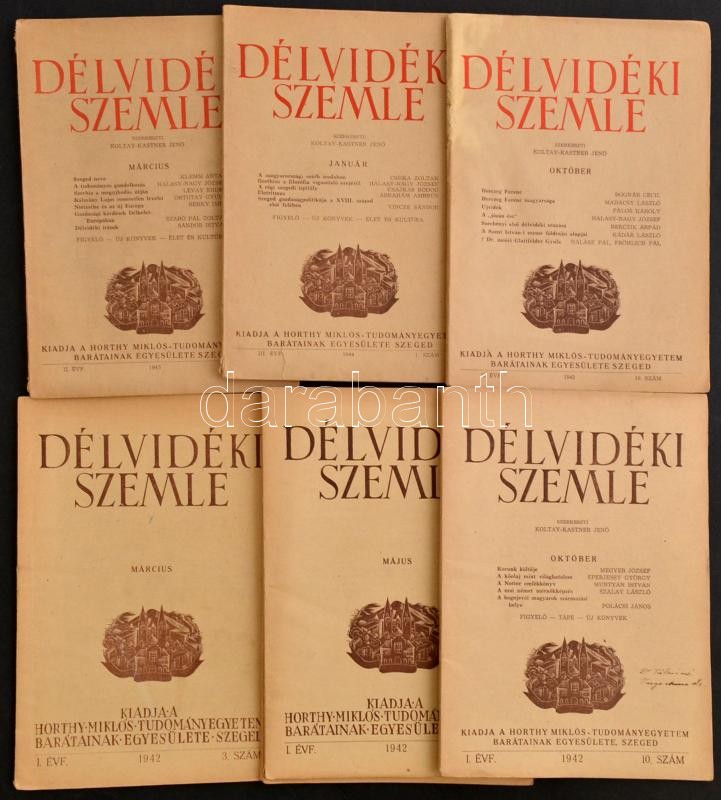 1942-1944 Délvidéki Szemle 7 száma. (I. évf. 3-5., 10. sz., II. évf. 3... https://www.darabanth.com/de/346-Fernauktion/346.0/Kunst-Dokumente-andere-Sammelgebiete/Drucksachen~500029/1942-1944-Delvideki-Szemle-7-szama-I-evf-3-5-10-sz-II-evf-3-10-sz-III-evf-1~II1965473