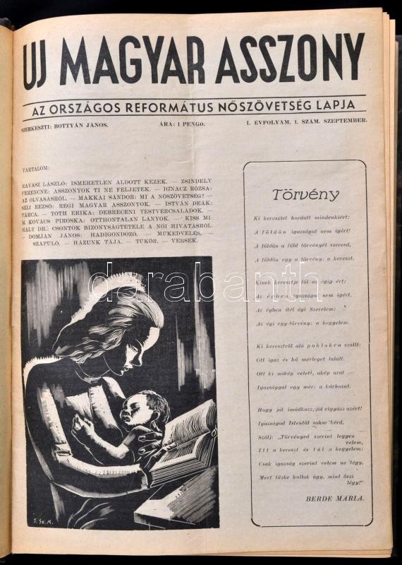 1944-1949 Uj Magyar Asszony. Az Országos Református Nőszövetség Lapjának szórványszámai, egybekötve, az elején az I. évf. 1-3. számokkal, a végén körlevelekkel. Félvászon-kötésben.