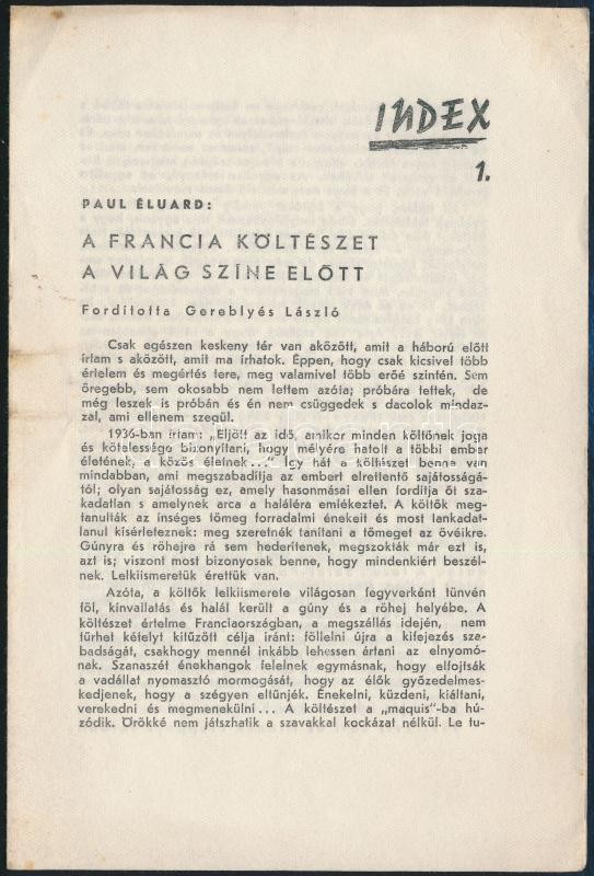 1946 Az Index Röpirat- és Vitairat Könyvtár 1. száma, mely a szürreali... https://www.darabanth.com/de/346-Fernauktion/346.0/Kunst-Dokumente-andere-Sammelgebiete/Drucksachen~500029/1946-Az-Index-Ropirat-es-Vitairat-Konyvtar-1-szama-mely-a-szurrealizmust-taglalja-4p~II1965572