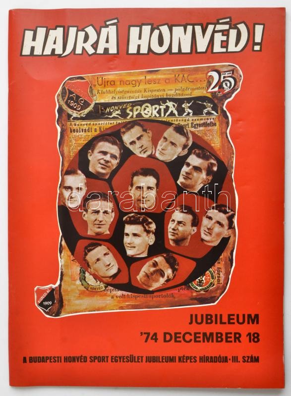 1974 "Hajrá Honvéd!" a Budapesti Honvéd Sport Egyesület jubileumi képe... https://www.darabanth.com/de/346-Fernauktion/346.0/Kunst-Dokumente-andere-Sammelgebiete/Drucksachen~500029/1974-Hajra-Honved-a-Budapesti-Honved-Sport-Egyesulet-jubileumi-kepes-hiradoja-III-szam-~II1961464