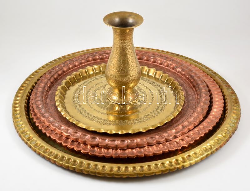 Réz tálcák (4 db) és egy váza, d:30-55 cm ,m:19 cm https://www.darabanth.com/de/346-Fernauktion/346.0/Kunst-Dokumente-andere-Sammelgebiete/Flohmarkt~500011/Rez-talcak-4-db-es-egy-vaza-d30-55-cm-m19-cm~II1967373