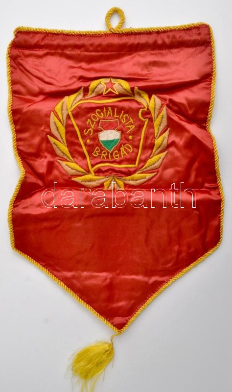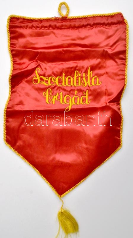 "Szocialista brigád" hímzett piros színű selyem zászló 38x24 cm https://www.darabanth.com/de/346-Fernauktion/346.0/Kunst-Dokumente-andere-Sammelgebiete/Flohmarkt~500011/Szocialista-brigad-himzett-piros-szinu-selyem-zaszlo-38x24-cm~II1954074