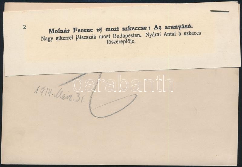 1913 Molnár Ferenc: Az aranyásó c. mozifilm Nyárai Antal főszereplésév... https://www.darabanth.com/de/346-Fernauktion/346.0/Kunst-Dokumente-andere-Sammelgebiete/Foto~500020/1913-Molnar-Ferenc-Az-aranyaso-c-mozifilm-Nyarai-Antal-foszereplesevel-korabeli-sajtofotC3~II1963157