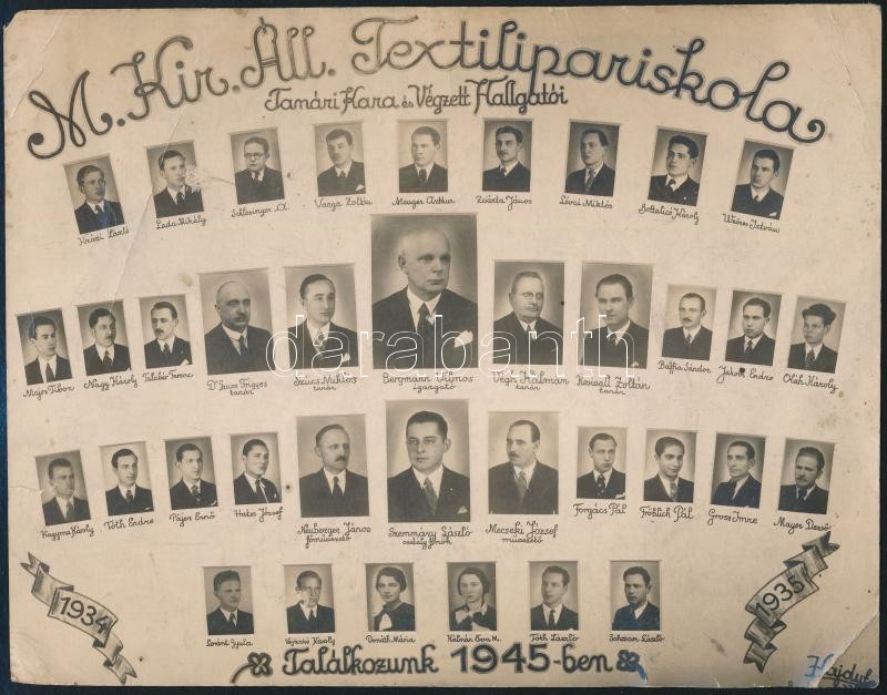 1935 M. Kir. Áll. Textilipariskola tanárai és végzett diákjai, kistabl... https://www.darabanth.com/de/346-Fernauktion/346.0/Kunst-Dokumente-andere-Sammelgebiete/Foto~500020/1935-M-Kir-All-Textilipariskola-tanarai-es-vegzett-diakjai-kistablo-nevesitett-portrekka~II1960908