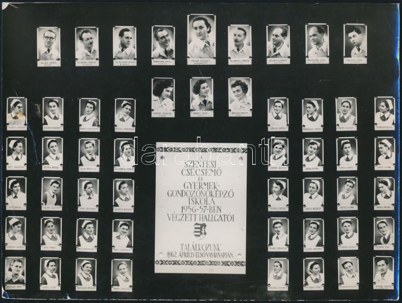 1957 Szentesi Csecsemő és Gyermek Gondozónőképző Iskola tanárai és vég... https://www.darabanth.com/de/346-Fernauktion/346.0/Kunst-Dokumente-andere-Sammelgebiete/Foto~500020/1957-Szentesi-Csecsemo-es-Gyermek-Gondozonokepzo-Iskola-tanarai-es-vegzett-diakjai-kistab~II1960897