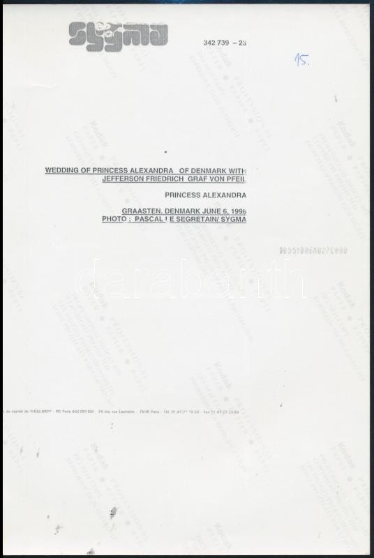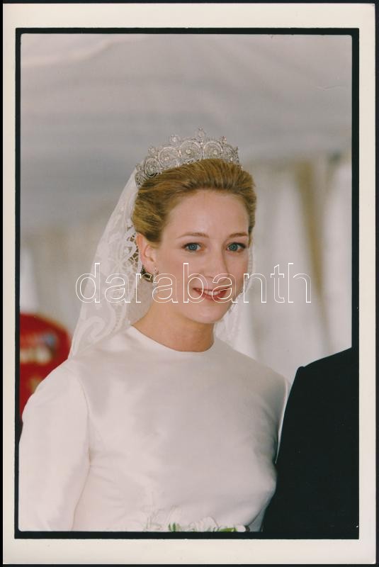 1998 Alexandra dán hercegnő esküvői fotója, Sygma képügynökség, hátoldalán feliratozva, 25x17 cm / Wedding of Princess Alexandra of Denmark with Jefferson Friedrich graf von Pfeil, photo, 25x17 cm