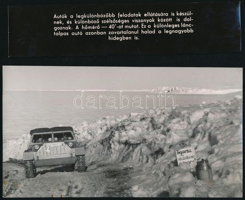 Beschreibung: Különleges lánctalpas autó - 40 fokban, eredeti sajtófotó, külön felirattal, 19×10 cm