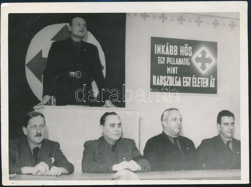 Nyilaskeresztes rendezvény elnöksége, hátuk mögött pártplakáttal, késő... https://www.darabanth.com/de/346-Fernauktion/346.0/Kunst-Dokumente-andere-Sammelgebiete/Foto~500020/Nyilaskeresztes-rendezveny-elnoksege-hatuk-mogott-partplakattal-kesobbi-nagyitas-felC3~II1965012