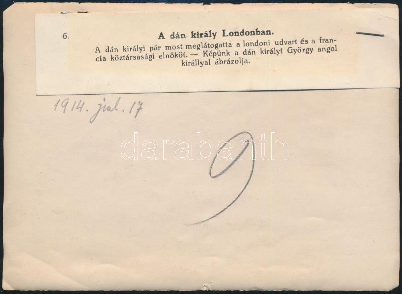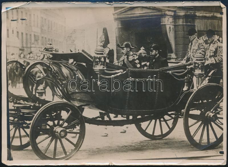 cca 1910 A dán király Londonban György királlyal korabeli sajtófotó hozzátűzött szöveggel / King of Danmark with King George in England. press photo 18x13 cm