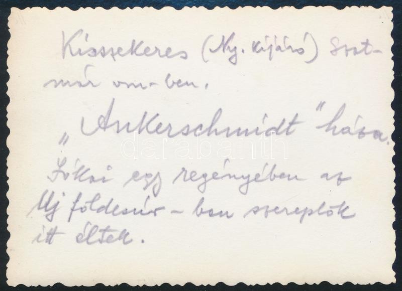 cca 1940 "Ankerschmidt" ház Kisszekeresen (Szatmár vármegye), az "Új földesúr" Jókai-regény szereplői itt éltek, hátoldalon feliratozott fotó, 6×8,5 cm