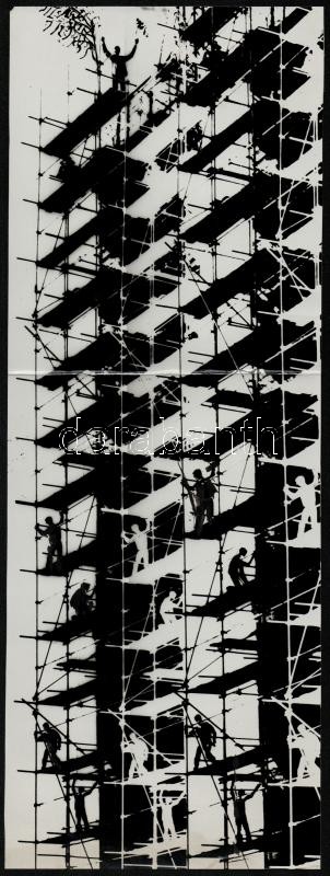 Beschreibung: cca 1974 Ágoston István pecséttel jelzett, vintage fotóművészeti alkotása, a magyar fotográfia avantgarde korszakából, hajtásnyommal, 39x14 cm