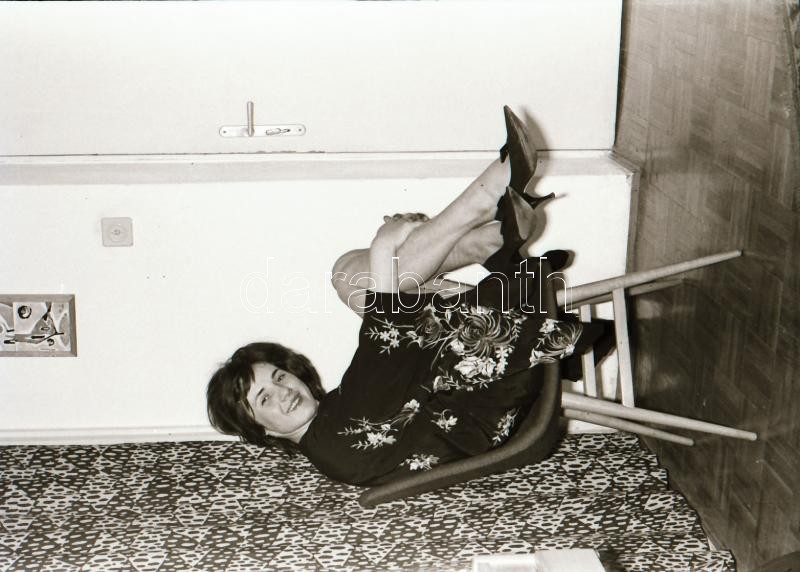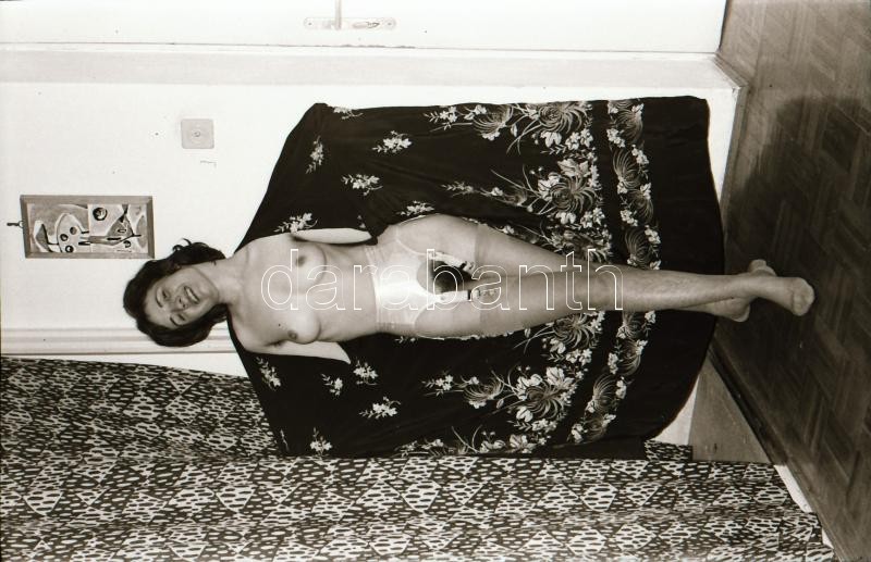 cca 1976 Titkos akták titkos aktjai, szolidan erotikus felvételek, 13 db vintage negatív + 2 db mai nagyítás, a papírképek nem a tételben levő negatívokról készültek, 24x36 mm és 25x18 cm között
