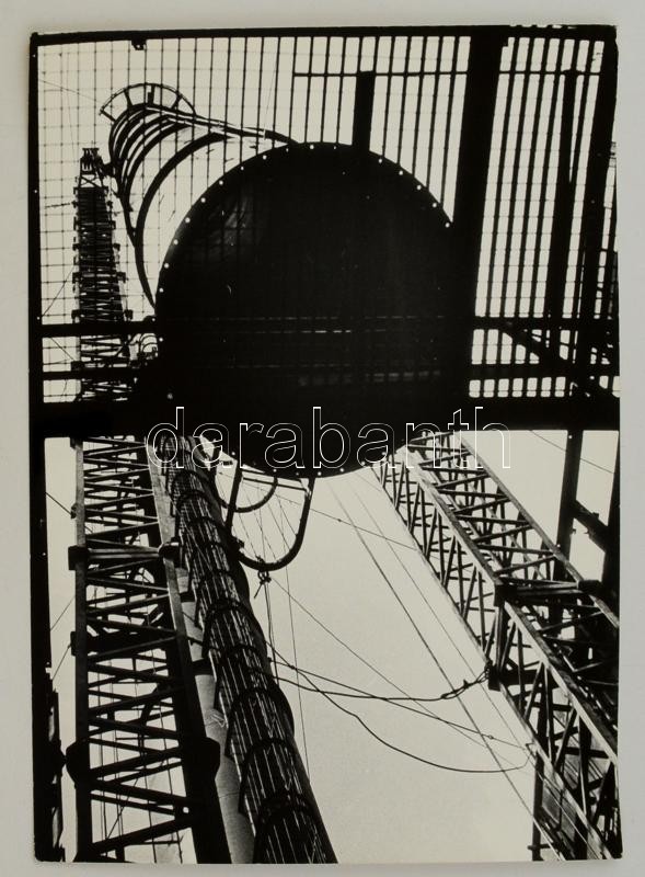 Beschreibung: cca 1978 Kalmár Károly: Kéményemelés, feliratozott vintage fotóművészeti alkotás, a magyar fotográfia avantgárd korszakából, 40x30 cm