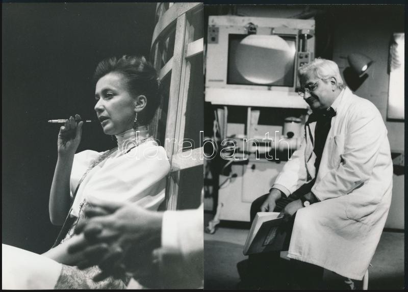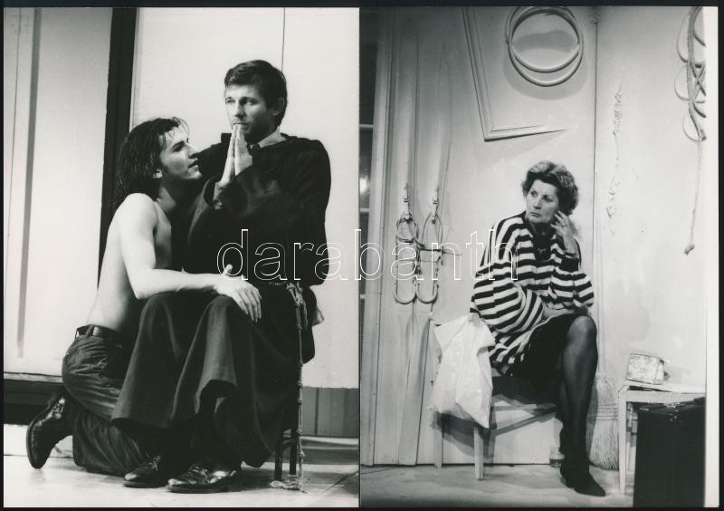 cca 1980-1990 Farkas Tamás (1925-2014): 4 db színészfotó, közte Alföldi Róberttel, Máthé Erzsi, Sinkó László, Eszenyi Enikő, a hátoldalán pecséttel jelzett, 18x13 cm közötti méretben